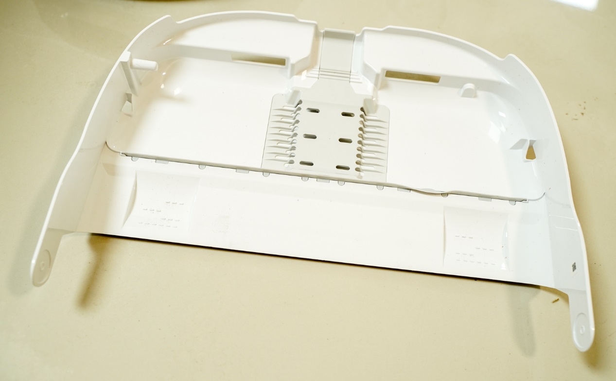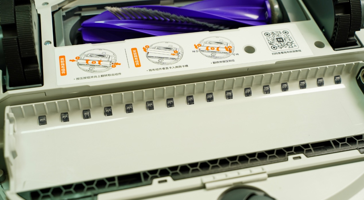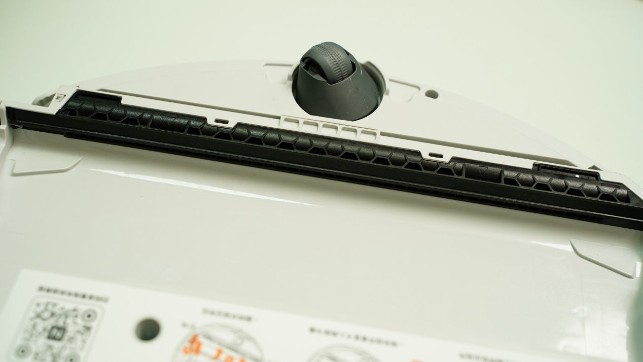 設計上,云鯨J6在履帶頂部設置了一整排共16個清水噴淋孔,用于實時潤濕和清洗履帶;另一側對稱位置設有污水回收口,可擠出并回收污水,同時過濾拖布中的固體垃圾。污水盒配備攪拌電機,避免泥漿掛壁,徹底解決污水盒用久發臭的問題。