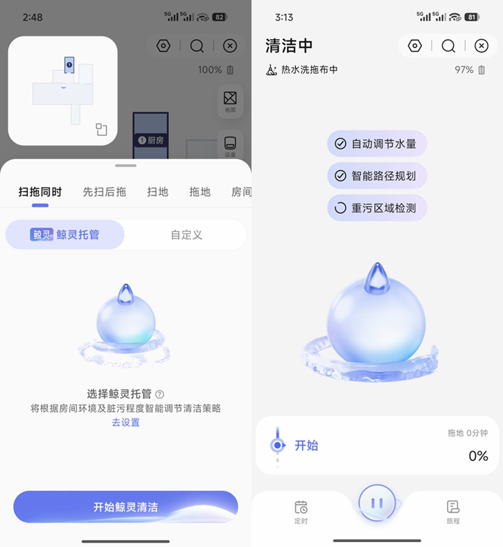 為提升使用便捷性,云鯨J6搭載鯨靈托管2.0Pro Max,行業首創托管模式,自動判斷臟污程度,該復洗就復洗,完全不用操心參數設置。