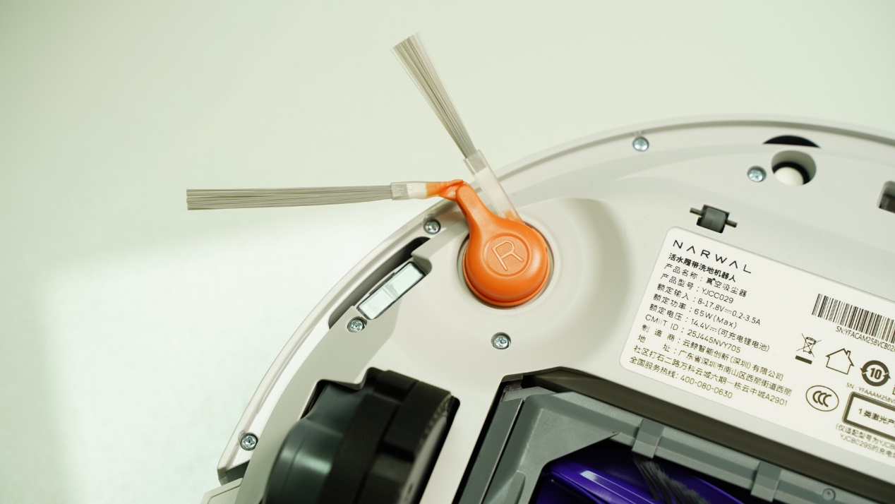 針對毛發纏繞問題,云鯨J6延續了自研的零纏繞單懸臂錐形滾刷,運用空氣動力學原理,將毛發順著滾刷捋向集塵口,強力吸入不打結,搭配主動式防纏邊刷,無論是長發還是寵物毛發,云鯨J6都能輕松處理不纏繞,告別手動清理。