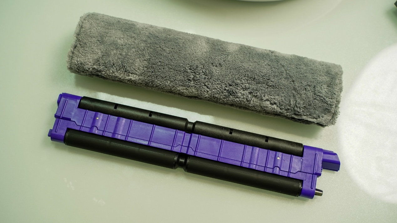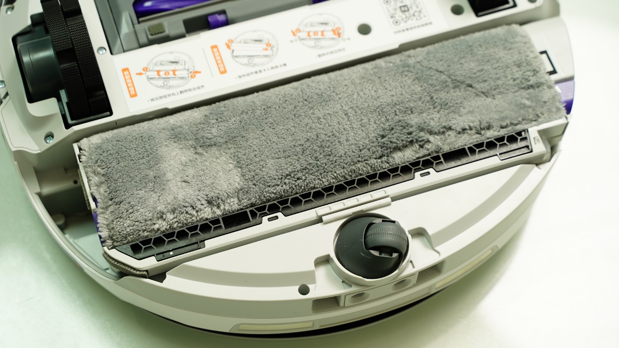 僅從物理特性來看,云鯨J6的履帶拖布相較于滾動式拖布,在接觸面積上具有跨越式優勢。其材質選用超纖吸水材料,不僅厚實,溶污效果也更出色。